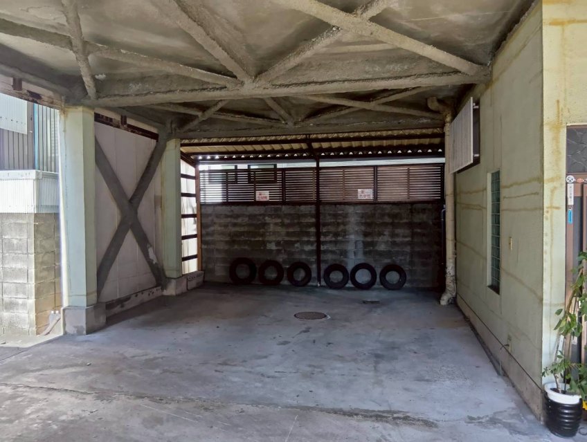 金公園から東へ約35mに位置する屋根付き駐車場になります