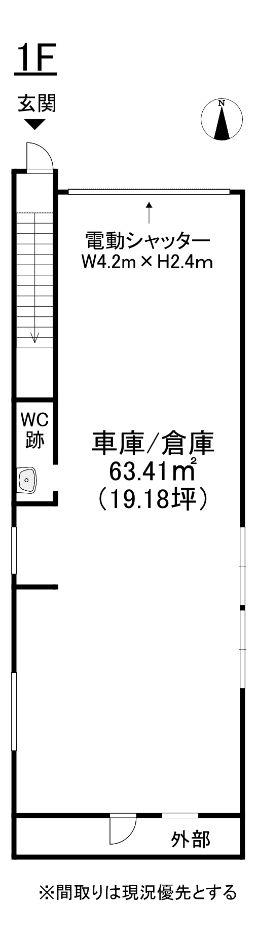 | 備考 | ・近隣に影響のある業種(臭気・騒音)不可 ・現状渡し(2階は改装予定有/床・壁・天井) ・1F部分は、車庫・倉庫に利用可 ・登記地番:602番 ・保証会社原則加入要(初回保証料:賃料総額の1ヶ月分/更新料無) ・火災保険加入要 |