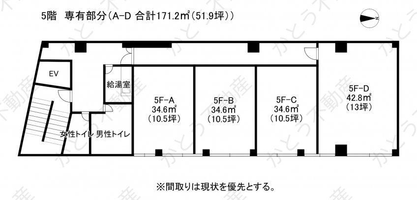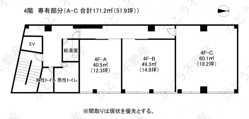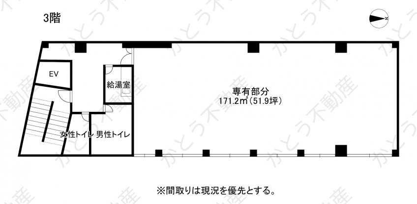 51.9坪というスケールは、事務所としての部署集約や、バックヤードを備えた店舗運営にも対応可能な広さではないでしょうか。