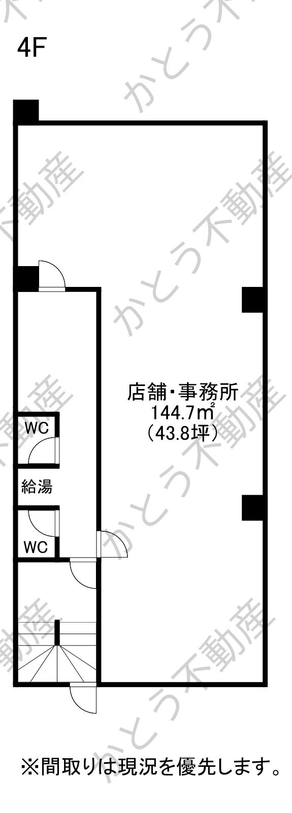 | 備考 | ・2階も同条件にて募集中! ・飲食不可 ・電気代:動力契約 通常電灯 月額77,000円(+税) (エアコン3台、通常電灯、給湯器等にかかる費用) 電力は業種、使用時間等により金額変動あり ・保険要加入:U-SEN ・間取り反転・同タイプ別部屋写真の場合あり。 ・現況優先 ・法人契約の場合は礼金+1ヶ月 ・登記可能な物件の場合は礼金+1ヶ月 ・短期違約金あり ・鍵交換費用:契約時30,800円(+税) 1か所につき28,000円(基本3か所あり) ・保証会社必須:エルズサポート 初回保証料:150%(※最低保証料なし) 月額保証料:支払総額の3%(月々/最低月額保証料4,500円) 引落手数料550円 |