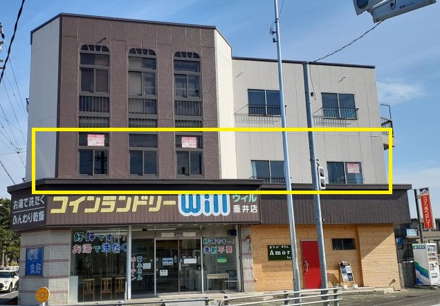 交通量の多い交差点角で目立つ!共同駐車場15台付の2階27坪貸店舗事務所 不破郡垂井町