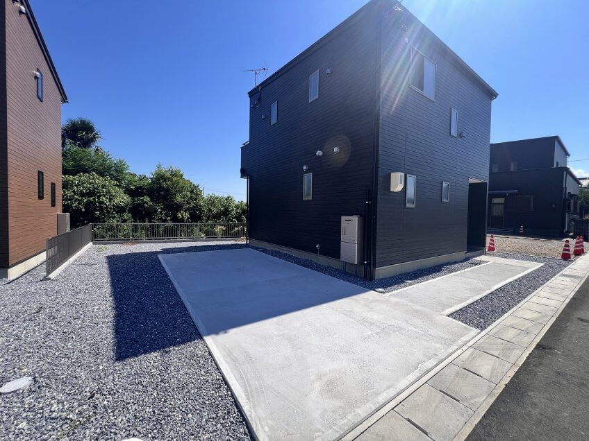 静かな住宅街の一角に位置する、スタイリッシュな新築戸建て物件