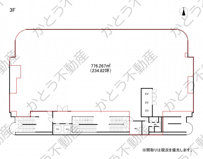 とても便利な立地にあり、3階に位置する約234坪の広々とした貸店舗・事務所です。