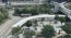 屋根付き歩道橋を歩いていくと、目の前にずどーんと現れる大きなビル。