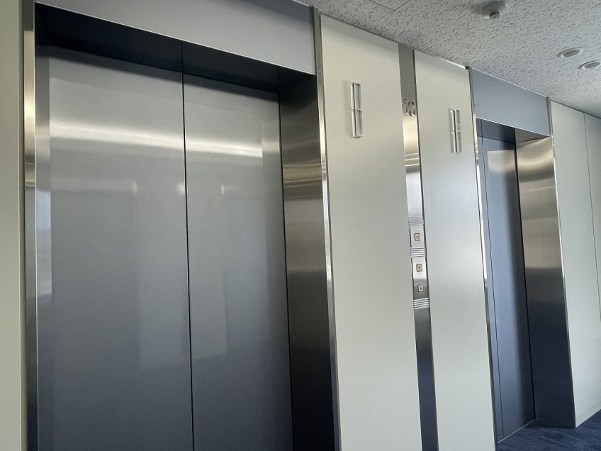 地下駐車場は64台収容可能、エレベーターは5機稼働しております