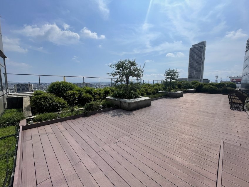 人感センサーを組み込んだ調光型照明、屋上庭園や壁面緑化のほか