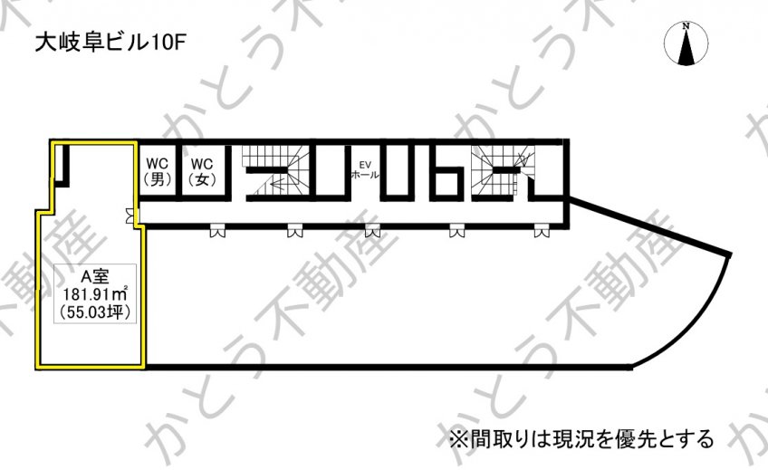 | 賃料 | ¥720,342 | 敷金/保証金 | ¥8,644,104 | 専有面積 | 181.92m² | 交通 | JR東海道本線「岐阜」駅 徒歩約2分 |