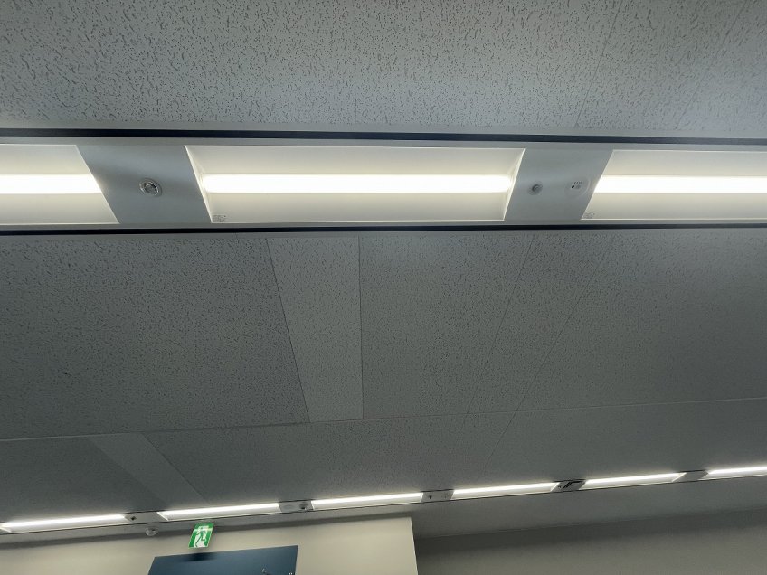 人感センサーを組み込んだ調光型照明、屋上庭園や壁面緑化のほか