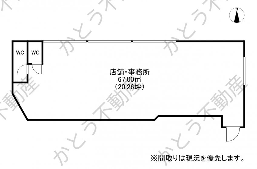 物件番号 R2284H 北側 物件種別 貸店舗・事務所 都市計画 - 接道状況 - 取引形態 媒介