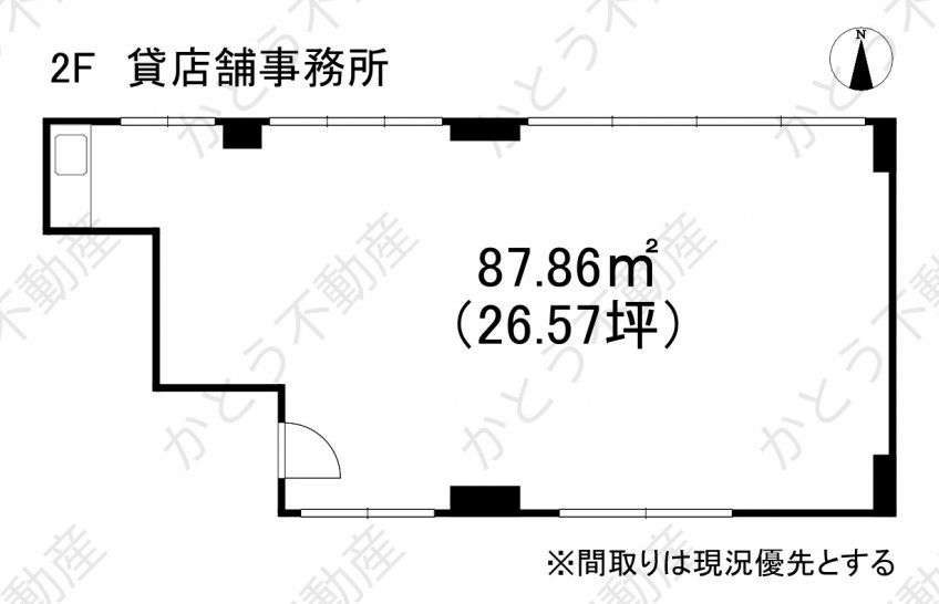 ワンフロア約26坪の貸店舗事務所になります