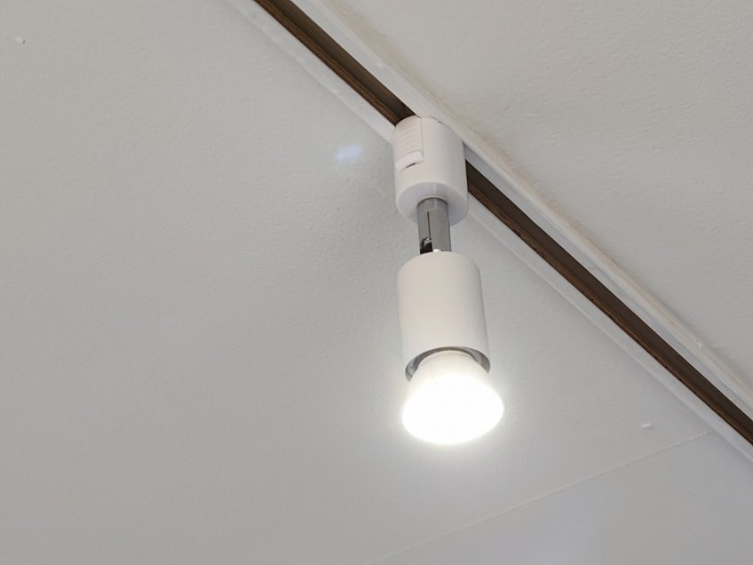 レール配電式のダウンライトを採用し、照射角度やレイアウトの調整も可能。