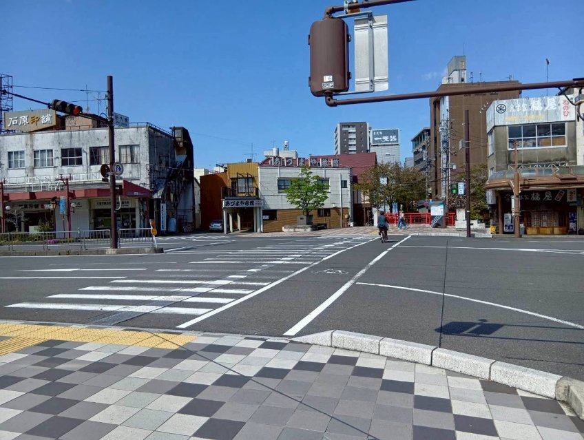 人の流れが絶えない交差点、その角地に佇む1階路面。