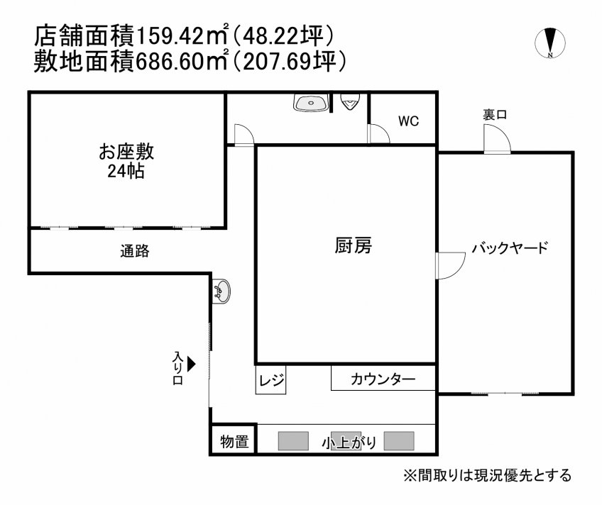 | 土地面積 | 686.6m² | 建物構造 | 鉄骨造瓦葺平家建 | 容積率 | 200% | 引渡し時期 | 相談 | 築年月 | 1994年8月 |