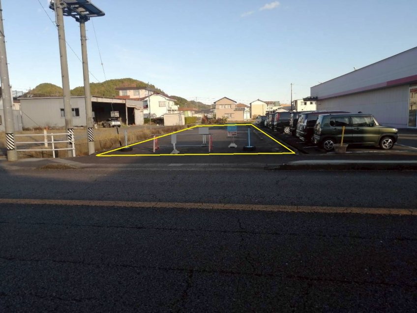 道路沿いで視認性が高く、トラックや乗用車の駐車場用地として最適な物件です。