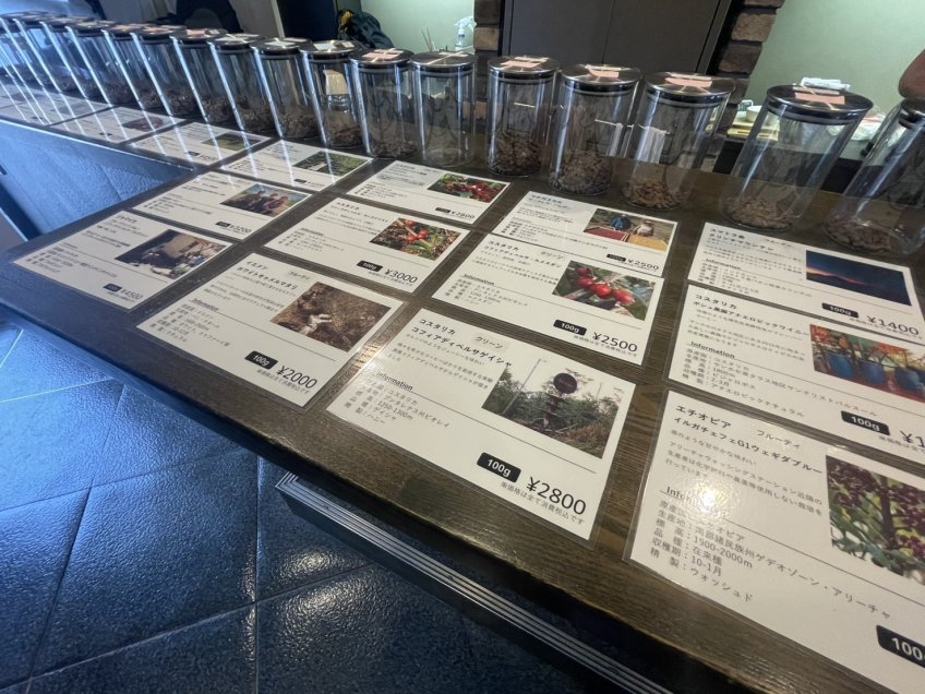 オーナーさんはコーヒーへの愛情たっぷりで、豆ごとのストーリーや本来の淹れ方まで丁寧に教えてくださいました。長年コーヒーを追求されてきたこだわりの豆販売店ということもあり、普段耳にしないような種類の豆がずらりと並んでいて圧巻!