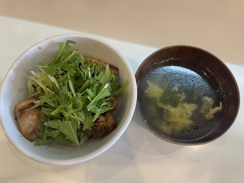 照り焼き風のコクのあるタレがたっぷりかかったご飯は食欲をそそり、あっさりとしたスープとの相性も抜群でした。